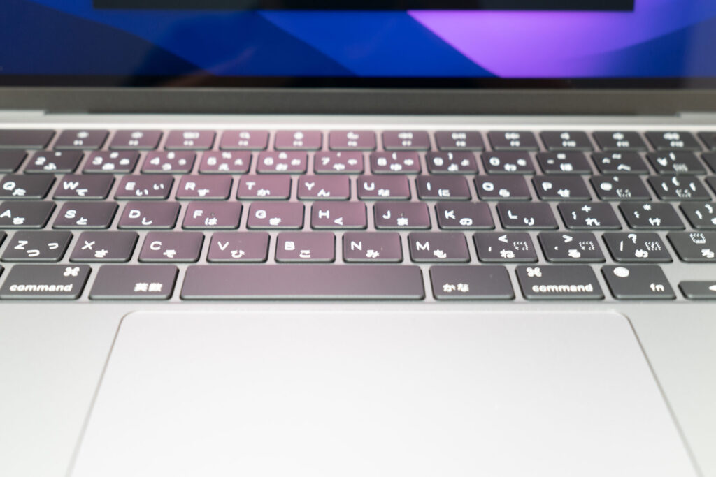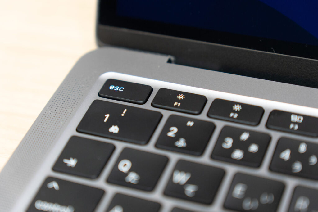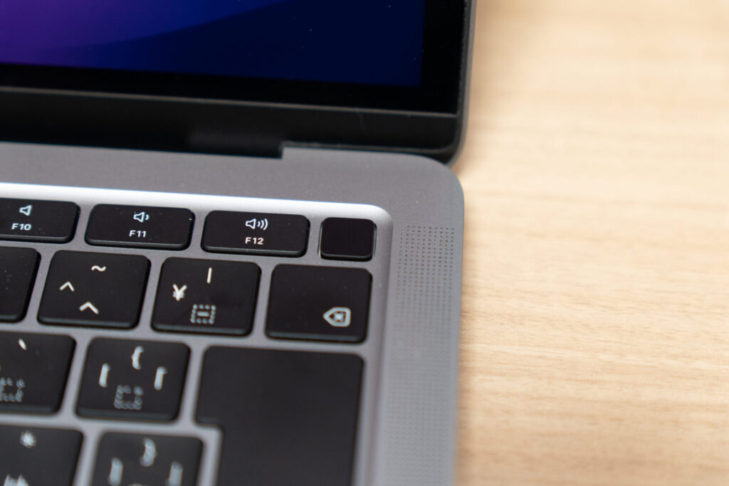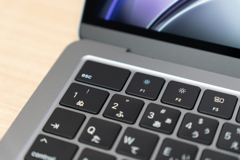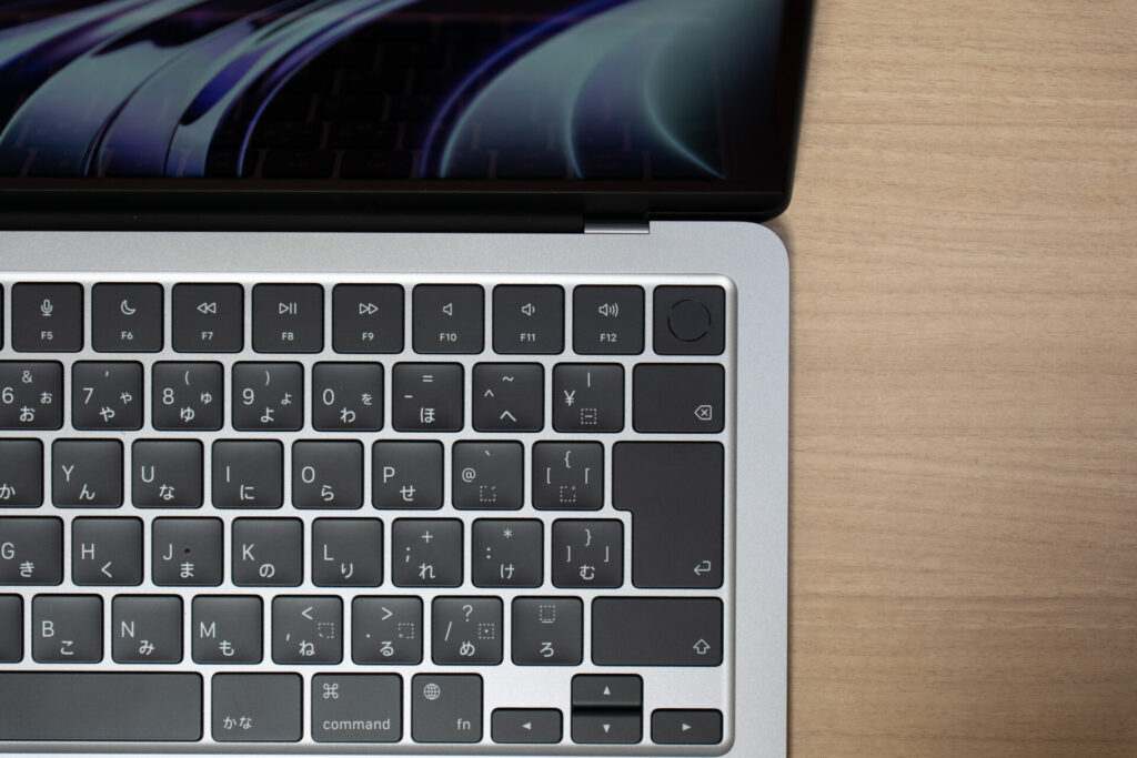 M1 ファンクションキーの縦が他のキーより短い。TouchIDも小さめ。