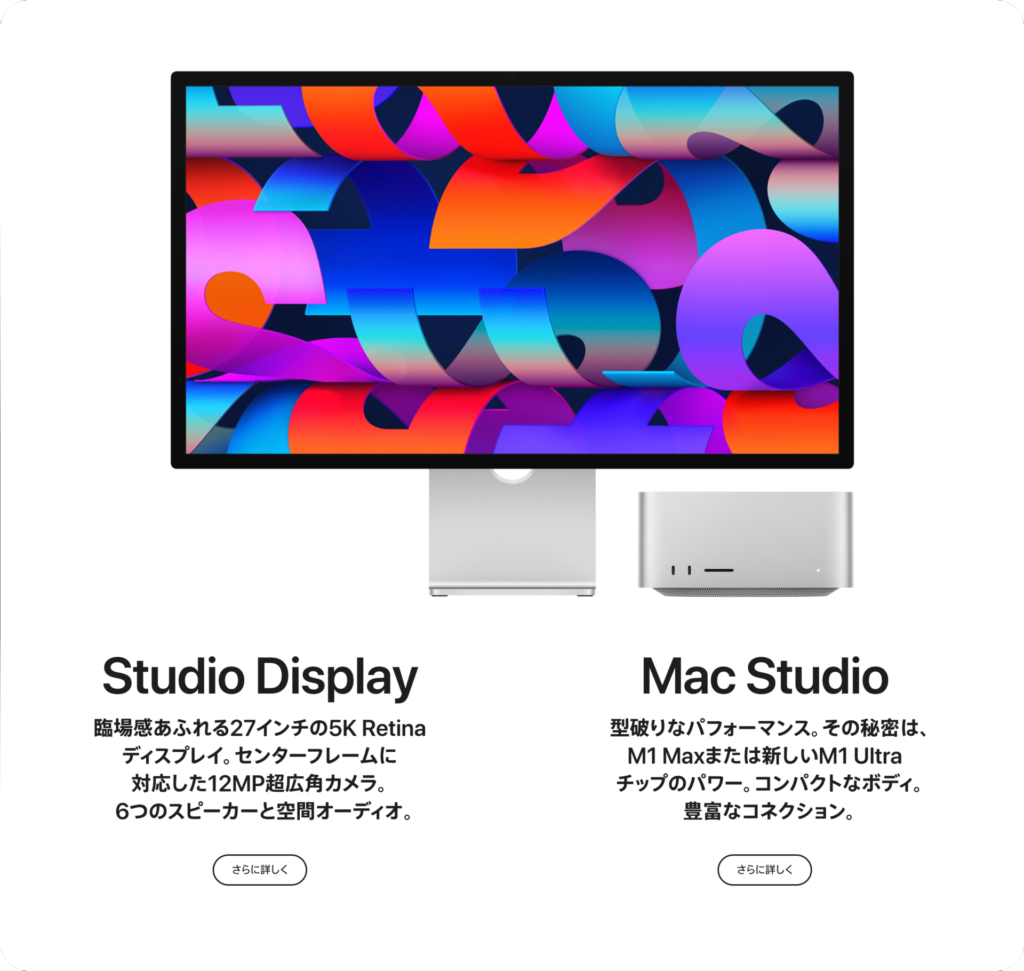 そしてそれを搭載した新しいMacとなる、Mac Studioも発表されました。(M1 Maxも選択可能)
